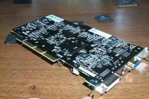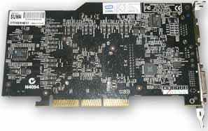 На карте установлены микросхемы памяти марки Hynix (Hyundai), время выборки 3.6 нс, что соответствует примерно 275 (550) МГц. Как вы уже могли догадаться, такая сверхбыстрая память установлена не случайно. Вспомним про суффикс SE. Да, он как раз и определяет то, что данная плата имеет такую память. Однако несмотря на такое время выборки, эти карты имеют штатные частоты 175/200 (400) МГц. Надо отметить, что в начале 2002 года вышла новая версия BIOS, которая, по словам разработчиков, уже оптимизирована для работы с такой памятью. И действительно, после прошивки этой версии мы увидели, что частоты работы карты изменились на 175/250 (500) МГц. По идее, это должно дать некоторый прирост производительности, хотя у карт такого класса главную роль в скорости играет частота процессора, а не памяти. Однако, в этом BIOS были сильно завышены тайминги по памяти, поэтому даже разгон до 550 МГц не принес особых преимуществ.