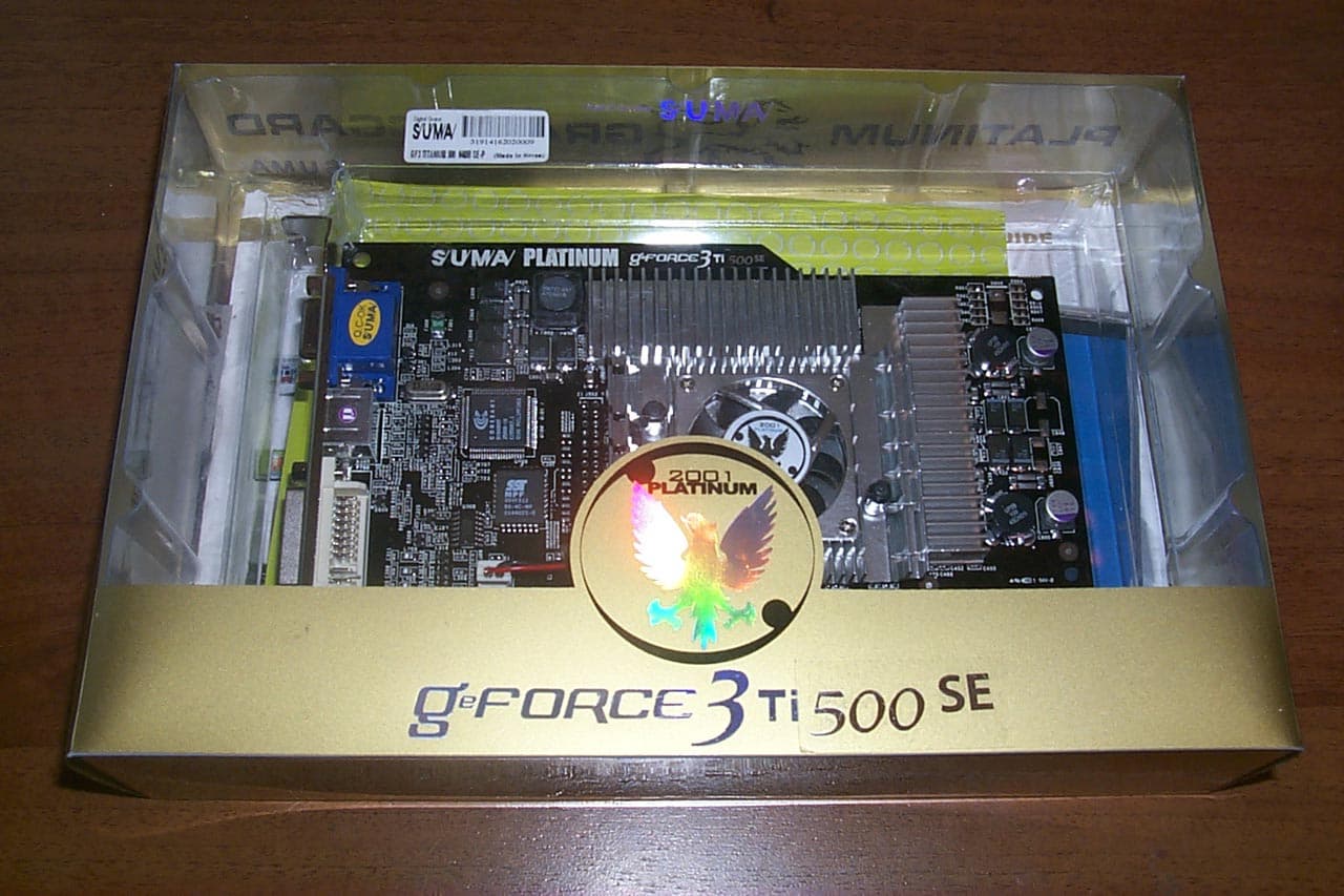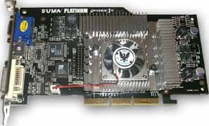 - SUMA Platinum GeForce3 Ti 500SE полностью соответствует reference card по всем параметрам, имея при этом чуть более высокую частоту работы памяти (разумеется, гарантированную производителем), а карта на базе Ti 200 изготовлена на такой же PCB (c доведенным до ума потенциалом по разгону).