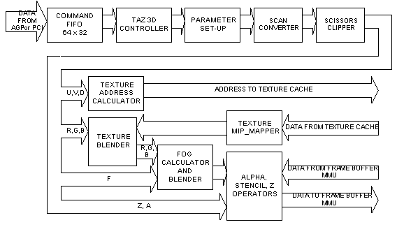 Нижеприведенный рисунок иллюстрируют архитектуру 3D-конвейера чипа: