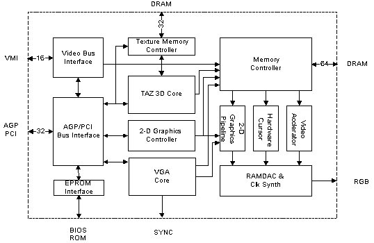На самом деле, это достаточно здорово. Семейство Voodoo, например, реально поддерживает только 16-разрядное представление цвета, а поддержка столь высокого разрешения в режиме true color для контроллера на одном чипе вообще реализована впервые. - Наличие выделенной памяти для хранения текстур.