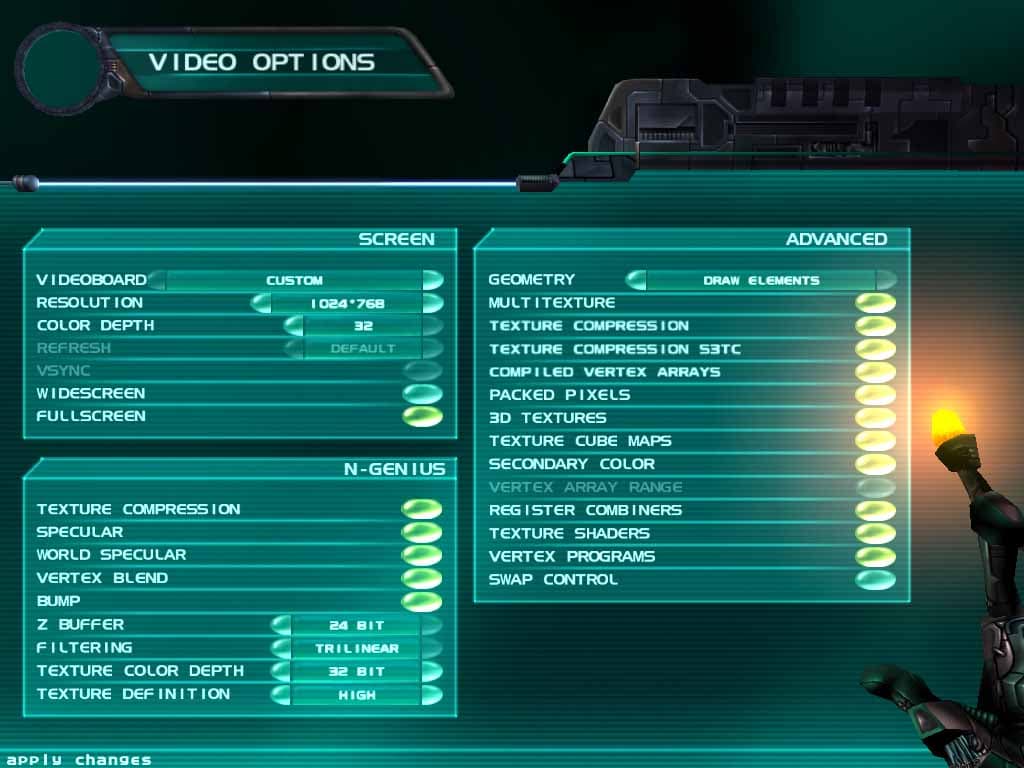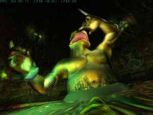 Это довольно примитивная по сюжету игра (аркада), однако она просто изобилует спецэффектами и использует все последние новации, доступные в OpenGL (в том числе и 3D-текстуры):