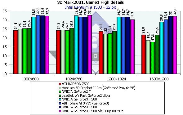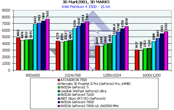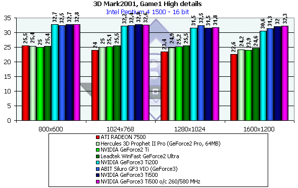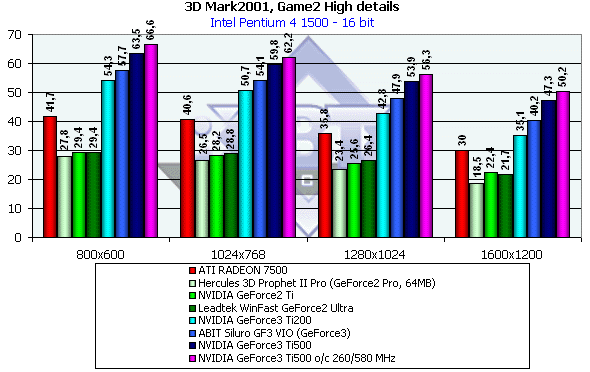 Комментарии излишни, соревнования в весовой категории GeForce2 Pro дали нам понять, что в 32-битном цвете король Radeon 7500, а вот в 16-битном А может, ну его вообще, этот 16-битный? Играть в современные игры и смотреть на "сеточку" дизеринга уже неэстетично просто.