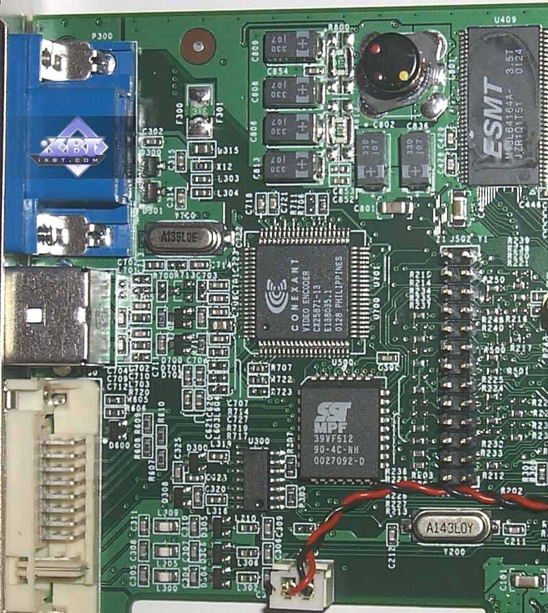 За счет изменения блока питания ядра набор логики, отвечающей за качество 2D-картинки (фильтры и т.д.), был перенесен с оборотной стороны PCB на лицевую. Анализ качества изображения будет проведен ниже, а здесь я могу лишь констатировать, что инженеры NVIDIA в свое время вняли справедливым нареканиям и постоянно работают над совершенствованием качества 2D-графики.