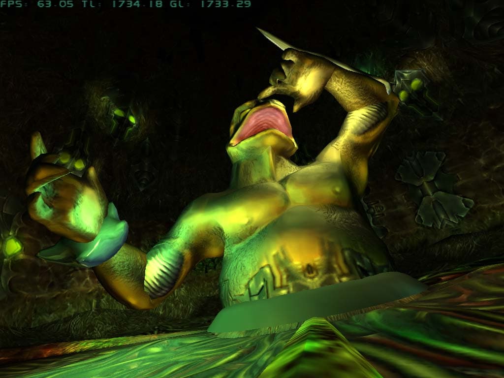 Тестирование на примере demo002 проводилось при условии максимальной детализации геометрии и текстур, при этом настройки были еще "утяжелены" повышенной сложностью объектов, содержащих "кривые" (r_subdivisions "1" r_lodCurveError "30000").