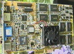 На карте смонтирован TV-out и есть посадочное гнездо под VGA-вывод для LCD-мониторов. Чипсет закрыт активным кулером. BIOS от 12 апреля 1999 года.