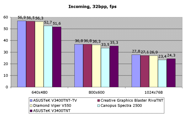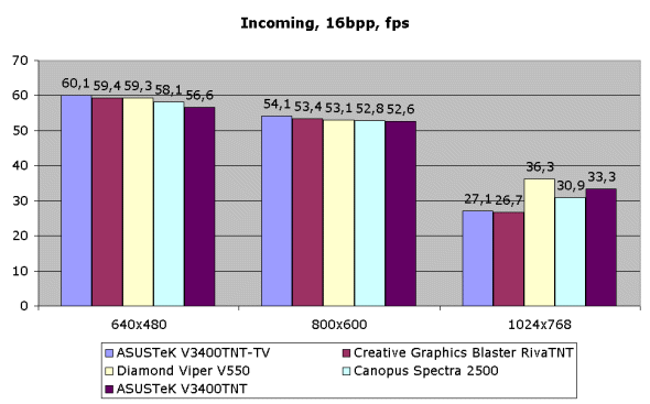 Тестирование проводилось на базе игры Incoming при разрешении 1024х768x16bpp.