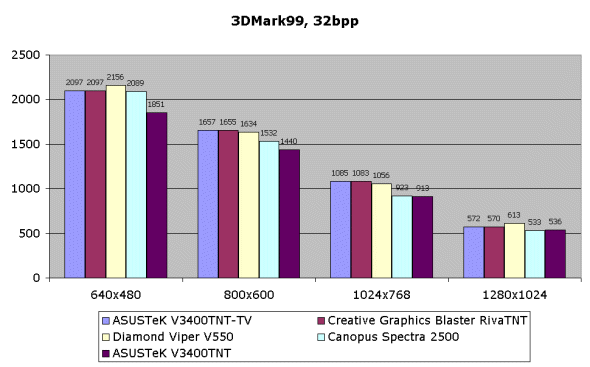 | Creative Graphics Blaster Riva TnT | Diamond Viper V550 | Canopus Spectra 2500 | ASUS V3400 TNT | ASUS V3400 TNT-TV |