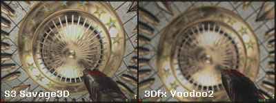 Слева Savage 3D с большими текстурами, справа — Voodoo2 со стандартными 256x256, которые остались и в Voodoo3. Есть разница?