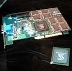 Однако, потом 3Dfx здраво рассудила, что ну не такая уж необходимая вещь, например, поддержка цифровых LCD панелей — не настолько они сегодня распространены, чтобы стоило ради них увеличивать цену карты. Да и SGRAM не так превосходит SDRAM по скорости, как по цене. В общем, было принято очень мудрое решение сделать средний вариант. Чуть помедленнее, с SDRAM, и без пресловутой поддержки цифровых LCD. И куда дешевле. Ему и досталось имя обозначение 3000, тогда как его старый владелец стал называться Voodoo3 3500.
