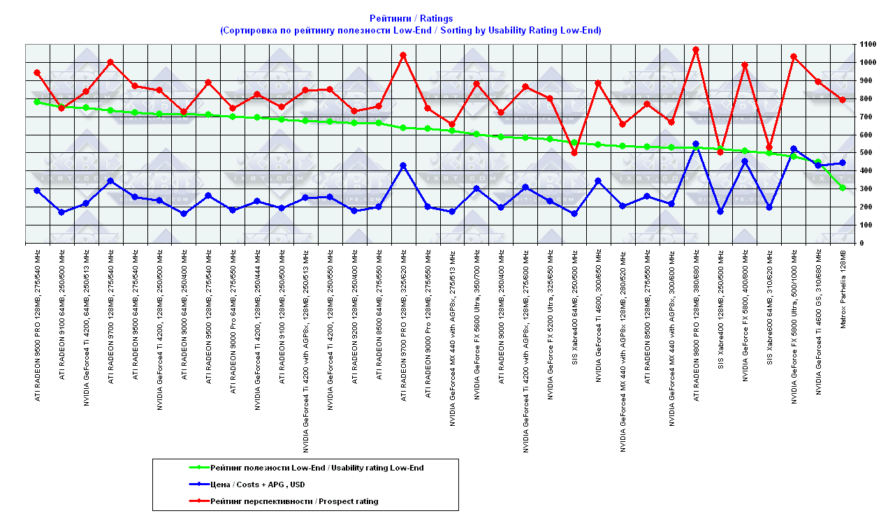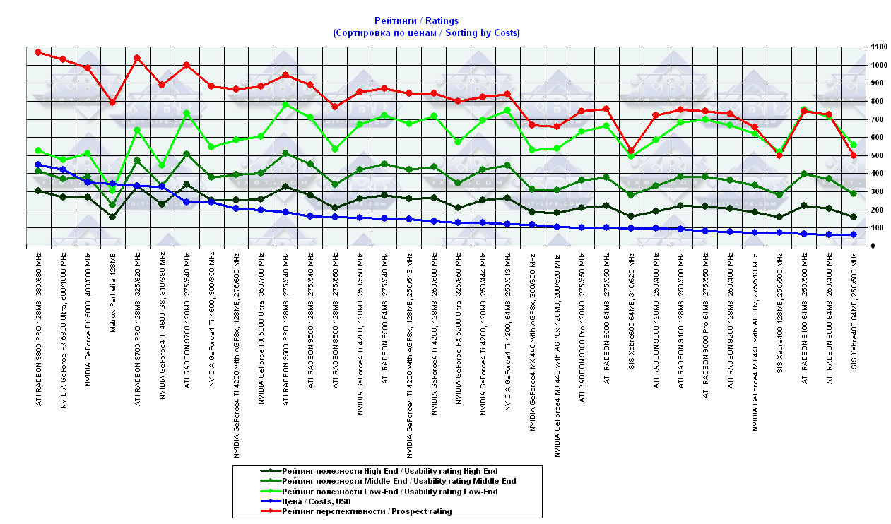 - = 400 GeForce2 MX (не учитывается, поскольку карты, снабженные TwinView, имеют бОльшую стоимость);