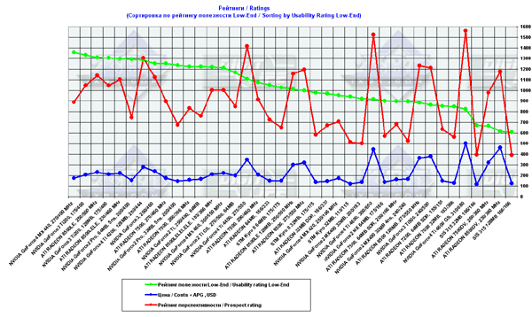 - сводные диаграмма по видеокартам стоимостью до $80 на базе всех стендов;