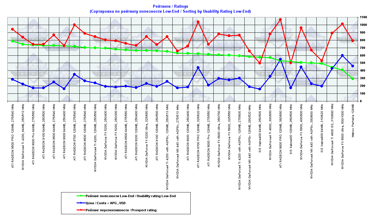 - = 400 GeForce2 MX (не учитывается, поскольку карты, снабженные TwinView, имеют бОльшую стоимость);