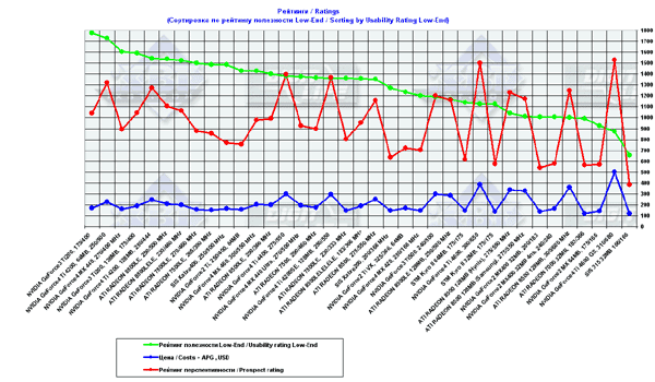 Как правило, после первых минут созерцания этого "чуда" возникает мысль, как бы сразу отправить новый "экспонат" в музей… :-) Но причин не находится, и видеокарта благополучно тестируется ежемесячно, занимая последние строки рейтингов.