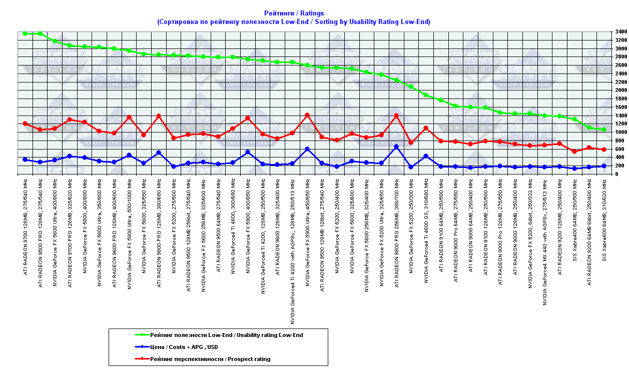 - = 400 GeForce2 MX (не учитывается, поскольку карты, снабженные TwinView, имеют бОльшую стоимость);
