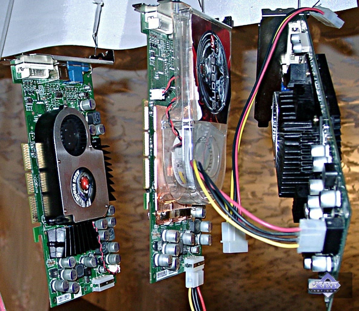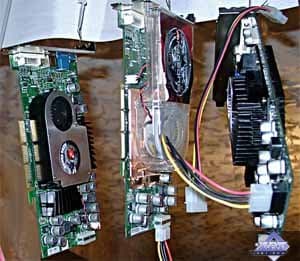Ныне в лаборатории находятся два стенда, которые совершенно одинаковые по всем параметрам (системные платы, процессоры, память, винчестеры, настройки BIOS), поэтому мы можем параллельно тестировать уже по две видеокарты. На снимке выше представлен один из рабочих моментов тестирования.