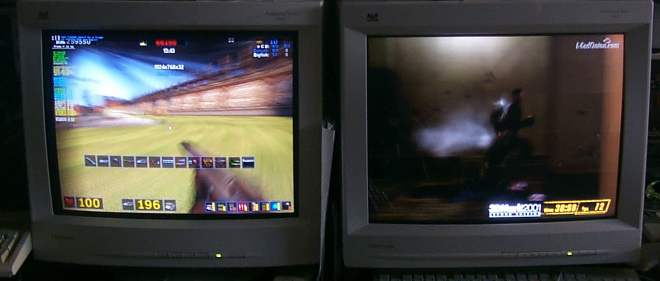 На стенде установлена операционная система Windows XP Professional Service Pack 1, DirectX 9.0a, использовались мониторы ViewSonic P810 (21"), ViewSonic P817-E (21").