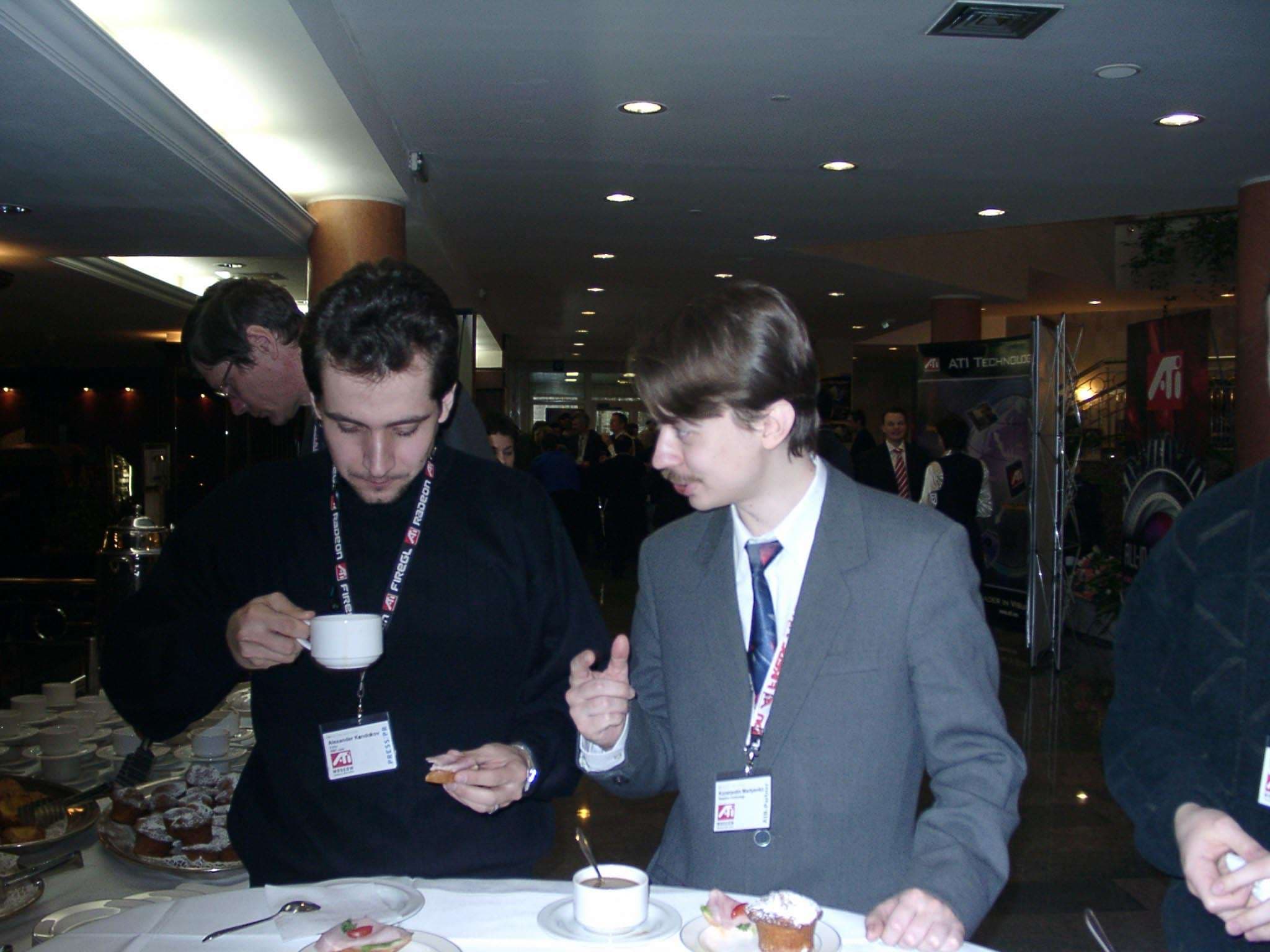 За прошедший год произошло много интересных событий в мире 3D-графики, вышел целый ряд новых продуктов, и команда 3DGiтогов постоянно в гуще событий. Вот например, тот же Саша Кондаков на январском форуме ATI за деловой чашкой кофе с представителем Sapphire в России Константином Мартыненко (справа):