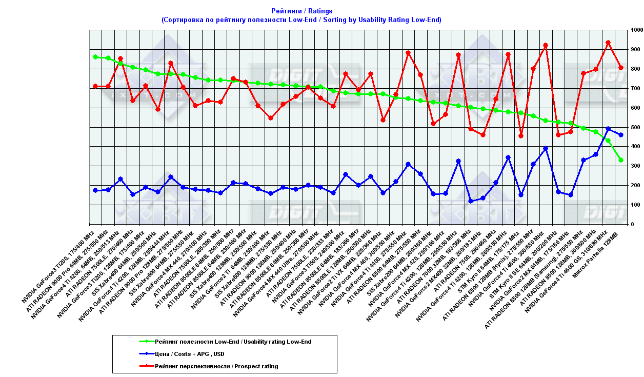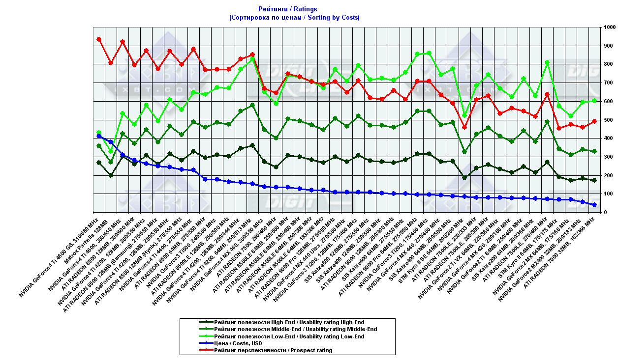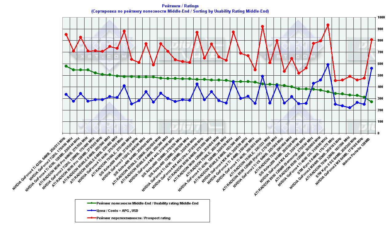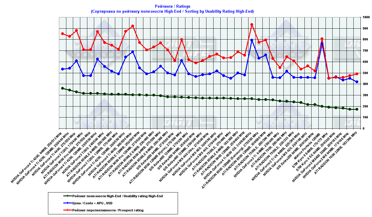 - = 400 GeForce2 MX (не учитывается, поскольку карты, снабженные TwinView, имеют бОльшую стоимость);