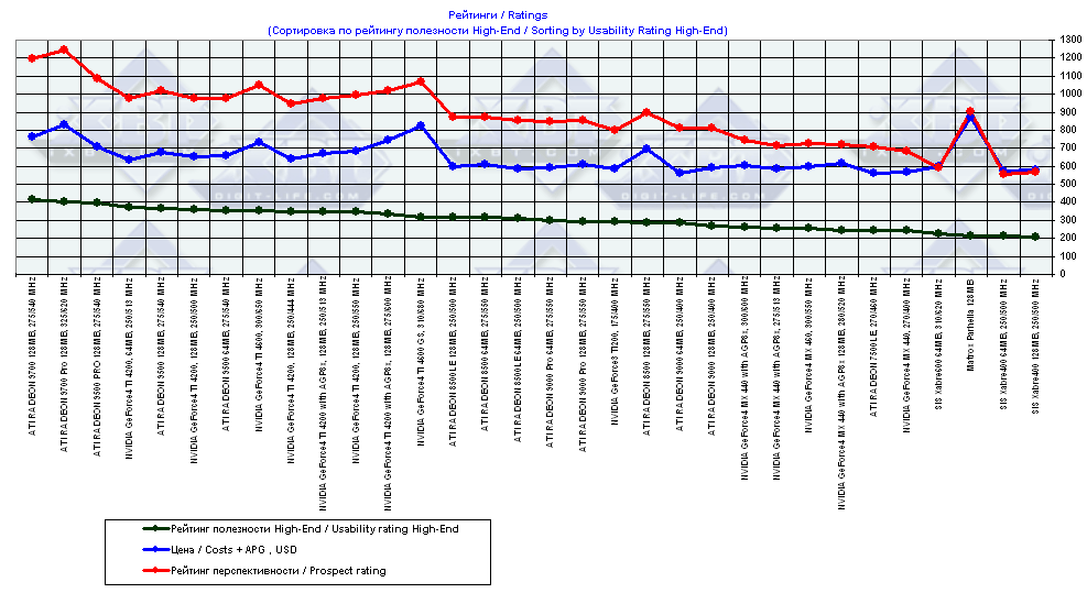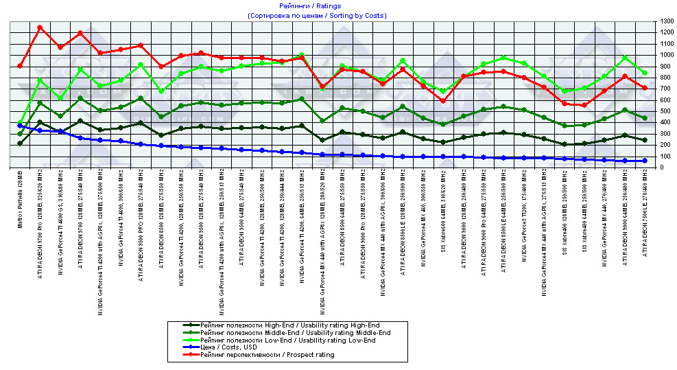 - = 400 GeForce2 MX (не учитывается, поскольку карты, снабженные TwinView, имеют бОльшую стоимость);