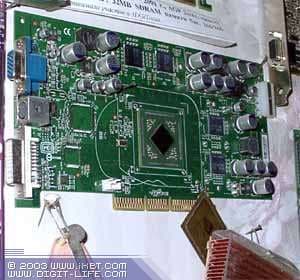 Эта карта не просто разогнанный GeForce FX 5600 Ultra, а, в отличие от RADEON 9600 XT, это принципиально новый продукт. Прежде всего процессор унаследовал сохраненный в целости блок вершинных шейдеров от NV35. А также, в целом была весьма сильно поднята частота работы до 475 МГц. Ну и третье, — это обкатка использования DDR-II памяти на решениях класса Middle-End.