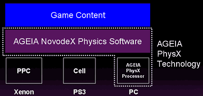 Не меньшей удачей для становления PPU PhysX следует признать заключенное летом прошлого года соглашение между Ageia и Sony, согласно которому API PhysX включается в стандартный набор инструментов разработчика для консоли PlayStation 3.