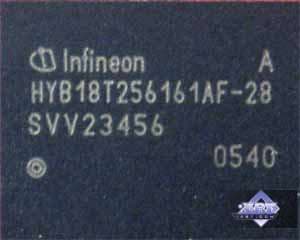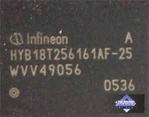 | Карта имеет 256 МБ памяти GDDR3 SDRAM, размещенной в 8-ми микросхемах на лицевой и оборотной сторонах PCB. Микросхемы памяти Infineon (GDDR3). Время выборки у микросхем памяти 2.5ns, что соответствует частоте работы 400 (800) МГц. | ![]() |