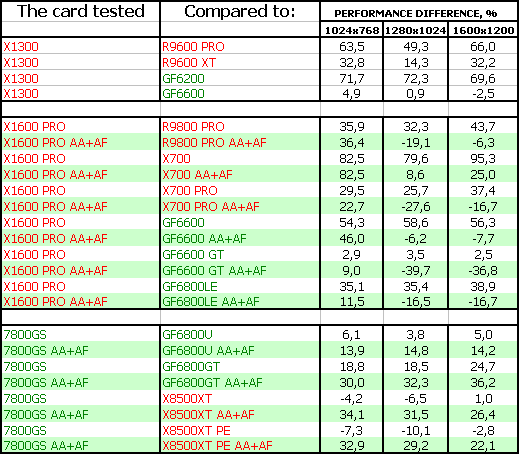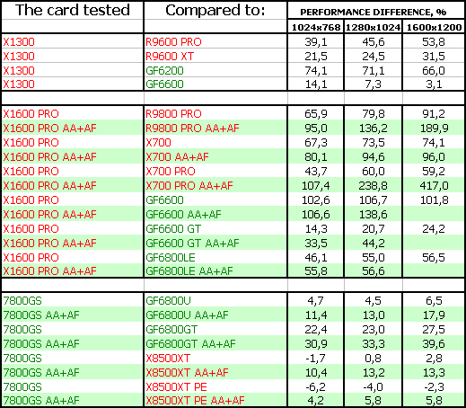 А также изучим еще три карты, на сей раз уже на базе середнячка X1600 PRO и представителей младшего уровня — X1300.