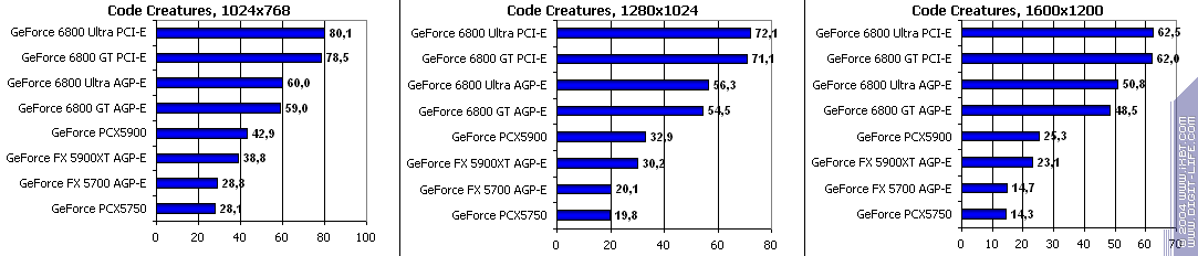 - Code Creatures Benchmark Pro (CodeCult) игровой тест, демонстрирующий работу платы в DirectX 8.1, Shaders, HW T&L.