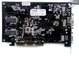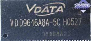 | Карта имеет 128 МБ памяти DDR SDRAM, размещенной в четырех микросхемах на лицевой и оборотной сторонах PCB. Микросхемы памяти VData. Время выборки у микросхем памяти 5ns, что соответствует частоте работы 200 (400) МГц. | ![]() |