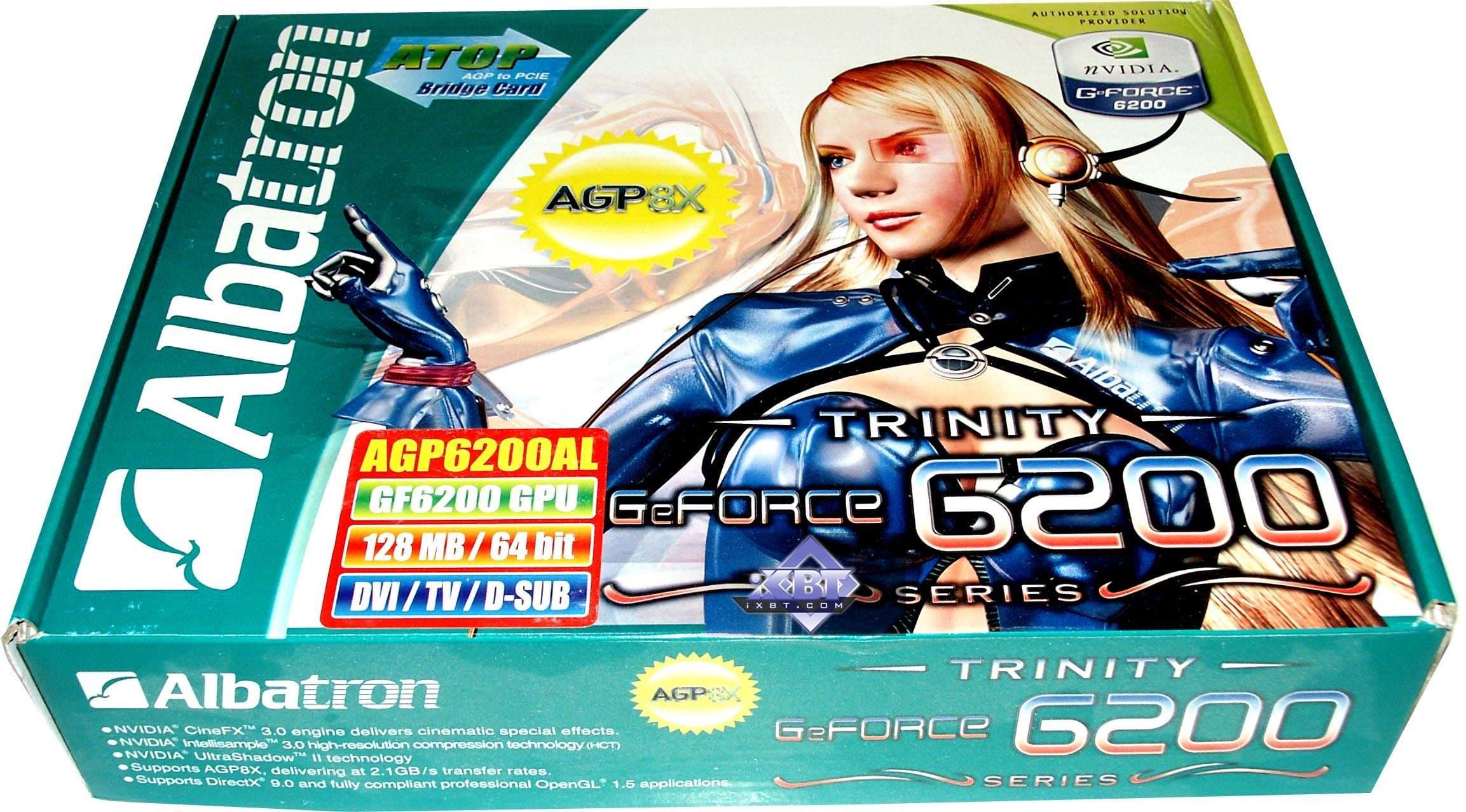 - Albatron GeForce AGP6200AL + ATOP PCI-E 128MB — весьма спорный и неоднозначный продукт. Да, безусловно, он интересный для исследований и изучений, но малопригоден для практики. Впрочем, могут найтись и такие пользователи, которые обновили платформу на PCI-E, но пока не хотят расставаться со своей AGP-видеокартой, и тогда ATOP может пригодиться! Но! Его ведь придется покупать с нагрузкой в виде 6200A. Снова отрицательный момент. В общем, как ни крути, изделие странное. Могли бы изготовить несколько типов брэкетов повышенной высоты под разные виды гнезд (VGA+DVI, DVI+DVI, DVI+VGA), поскольку они все стандартны для всех карт на референс-основе, с тем, чтобы можно было закрепить такую двухэтажную карту в корпусе. И положить их в комплект поставки. Разумеется, подчеркну еще раз, могут найтись и такие пользователи, которые будут только ради приобретения ATOP, но, к сожалению, продукт до сих пор так на прилавках и не появился, и возможно, что так и останется музейной редкостью (о чем я говорил уже выше).