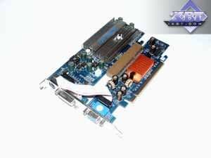 | Карта имеет 256 МБ памяти GDDR2 SDRAM, размещенной в 8-ми микросхемах на лицевой сторонe PCB. Микросхемы памяти Hynix (GDDR2). Время выборки у микросхем памяти 2.8ns, что соответствует частоте работы 350 (700) МГц. | ![]() |