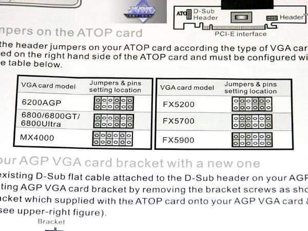 Сам переходник ATOP предназначен для использования с рядом иных видеокарт, для чего у него есть набор пинов с перемычками: