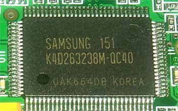 | На видеокарте установлены микросхемы памяти от Hynix со временем выборки 3.6ns, что соответствует примерно частоте работы 275 (550) МГц, на ней память и работает. Графический процессор тактован также на 275 МГц. | ![]() |