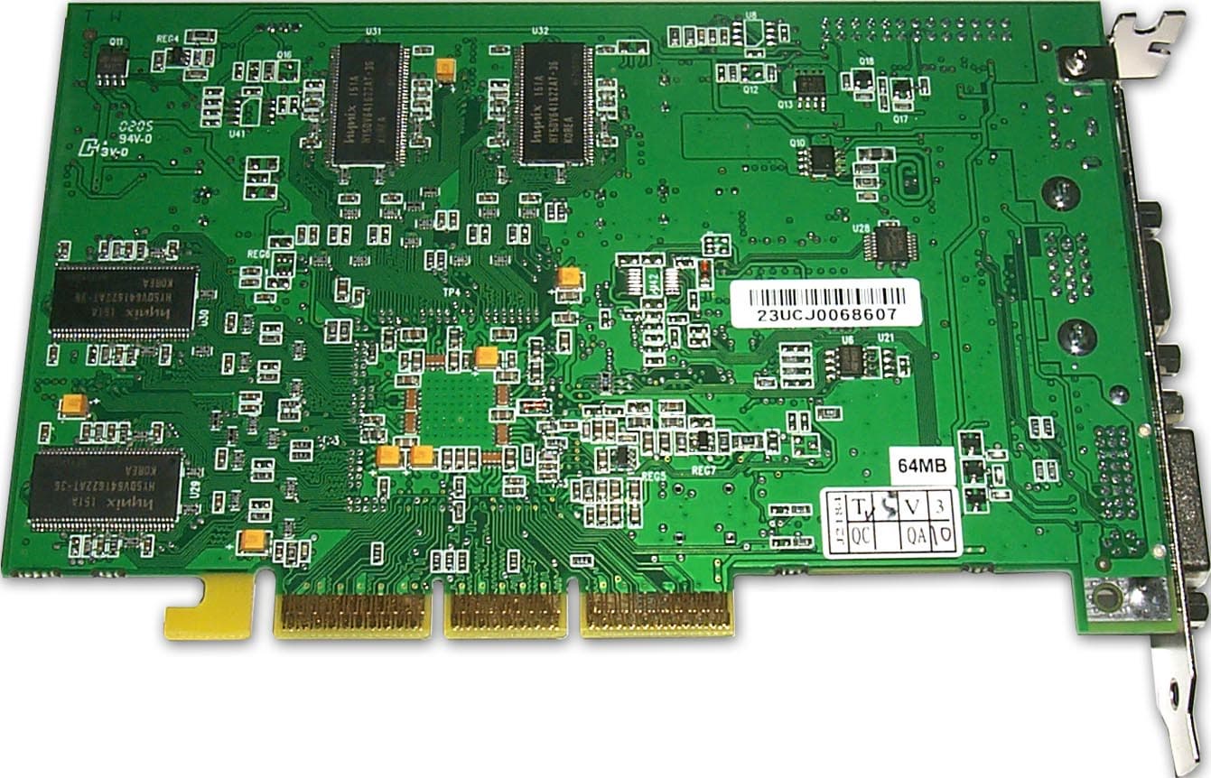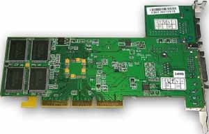 Можно еще раз обратить внимание на память. В отличие от карт, базирующихся на эталонном дизайне, в данном решении от Jetway присутствует SGRAM-память, причем в более крупных микросхемах: 4-х штук которых достаточно для организации 64-х мегабайт при 128-битной шине.