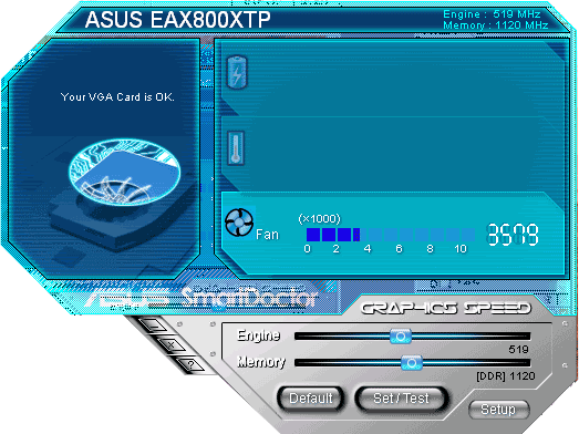 Затем отмечу, что ASUS AX800XT Platinum оснащен функцией видеозахвата (VideoIn) через RAGE Theater. Поклонникам мониторов с DVI-интерфейсом понравится то, что у этой платы — два DVI-I гнезда (разумеется, через переходник DVI-to-d-Sub можно подключать и все остальные мониторы).
