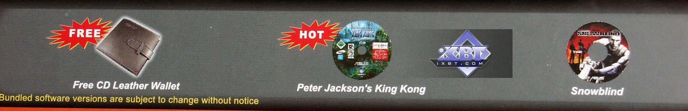 - ASUS EN7600GT Silent 256MB PCI-E — Очень интересное решение среднего класса (от 5400 рублей), имеющее бесшумный кулер. Да, по ряду параметров конкурент в лице X1800 GTO обходит 7600 GT (256битная шина, где-то в скоростях выше, наличие поддержки HDR+AA, более качественная анизотропия), но он, как правило, дороже (впрочем, приведенные внизу цены все расставят по своим местам). Акселератор отработал прекрасно, проблем не было, качество в 2D превосходное в 1600х1200 при 100 Гц. Дополнительно отмечу комплект поставки с бонусом.