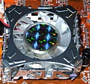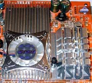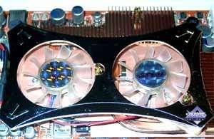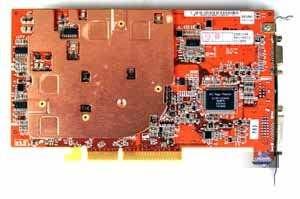 Кстати, рассмотрим эти самые системы охлаждения. Про RADEON 9200SE рассказывать нет смысла, на плате установлен обычный игольчатый радиатор.