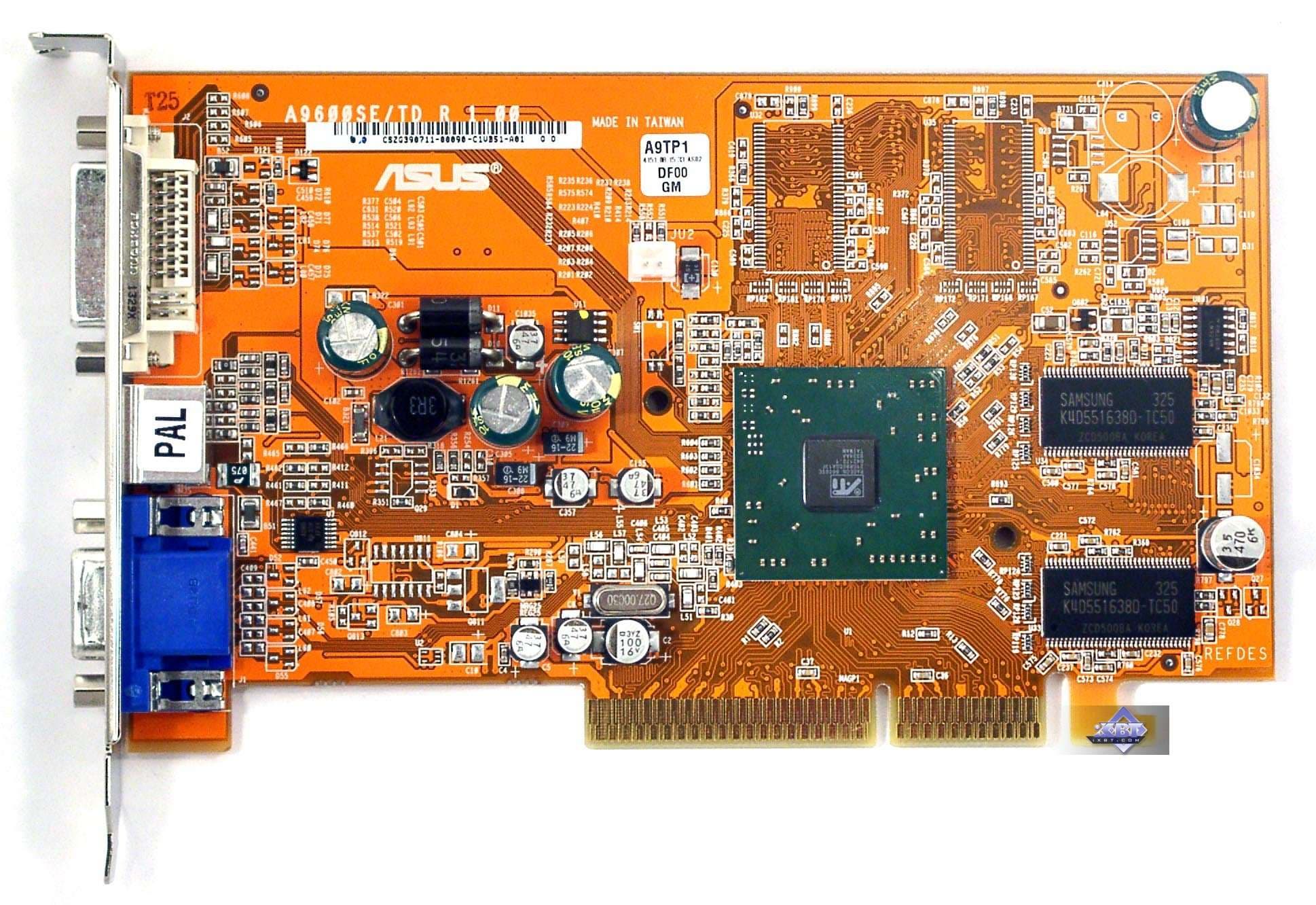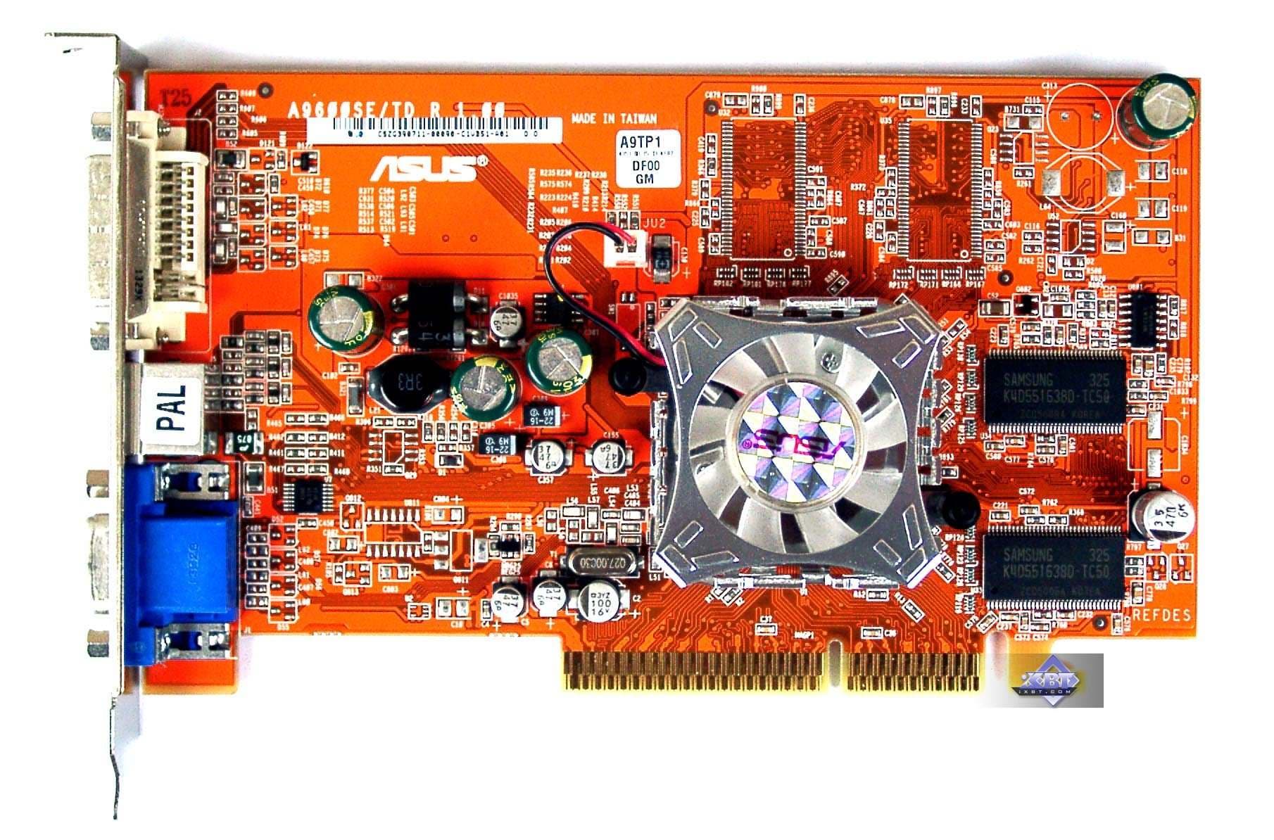 | Карты имеют интерфейс AGP x8/x4, (9200SE — AGP x8/x4/x2), 128 МБ памяти DDR SDRAM (ASUS RADEON 9800 XT — 256MB), размещенной в 8-ми микросхемах на лицевой и оборотной сторонах PCB (у ASUS RADEON 9200SE 128MB только 4 микросхемы). | |