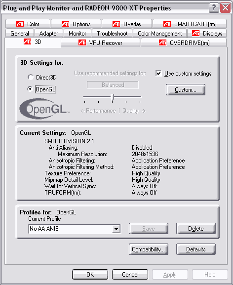 | ASUS RADEON 9800 XT 256MB | 1600x1200x85Hz, 1280x1024x120Hz, 1024x768x120Hz |
