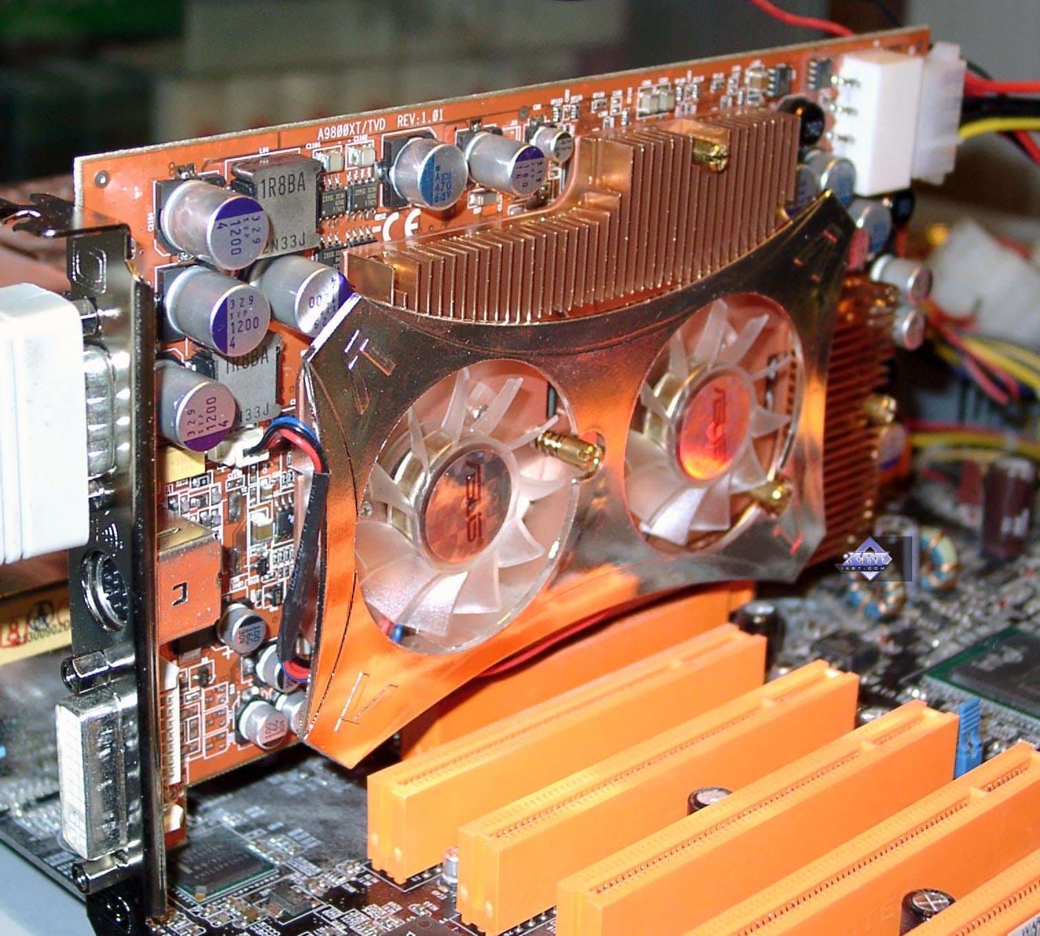 Продолжая тему о RADEON 9800 XT, покажем и как эта карта выглядит после установки в системную плату: