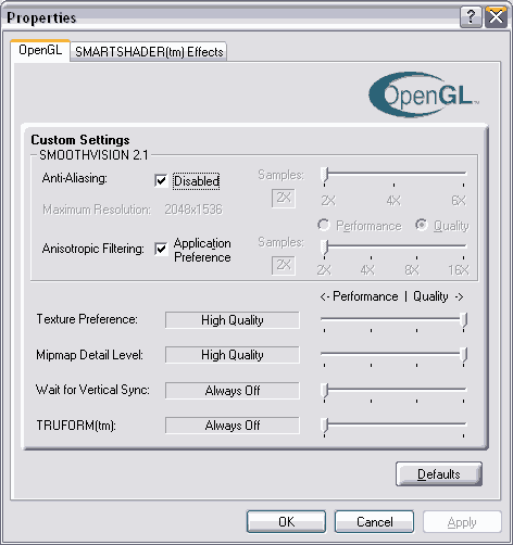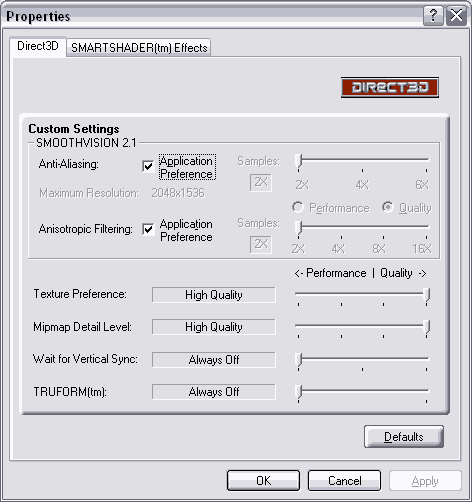 Итак, очевидно, что настройки по 3D объединены в одну панель, где уже и идет разветвление на D3D и OpenGL: