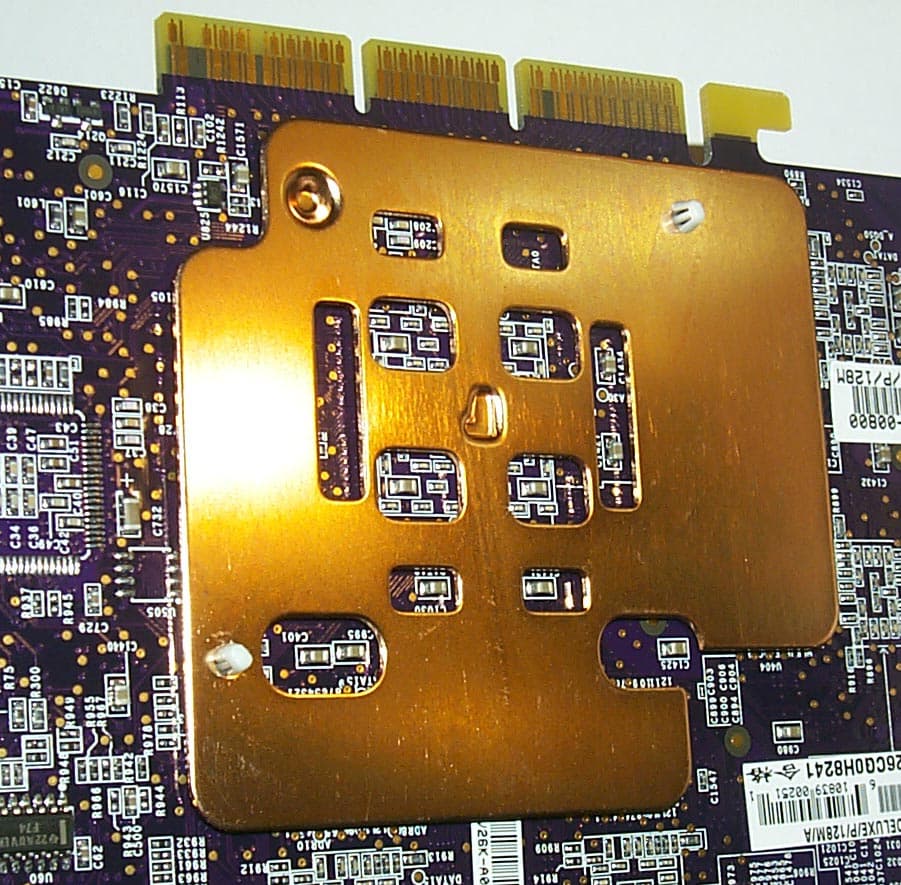 А теперь посмотрим на дополнительную систему охлаждения, ведь на двух картах на оборотной стороне расположен еще один медный радиатор, представляющий собой пластину: