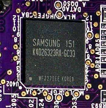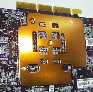 | На видеокарте установлены модули памяти от Samsung со временем выборки 3.3ns, что соответствует примерно частоте работы 300 (600) МГц, но память работает на частоте 275 (550) МГц. GPU функционирует тоже на повышенной для Ti 4200 частоте 260 МГц (обычная частота карт на Ti 4200 с 128-ю мегабайтами — 250/444 МГц.) | ![]() |