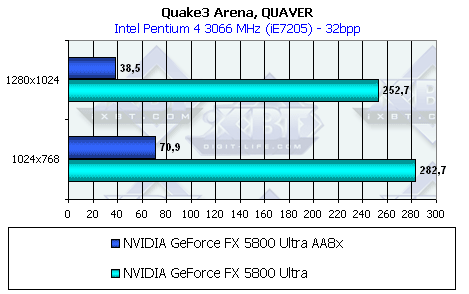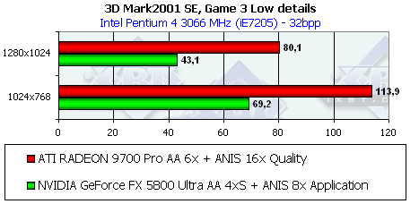 - Тестирование на базе Pentium 4 3066 МГц, 1600x1200, Game Test 3