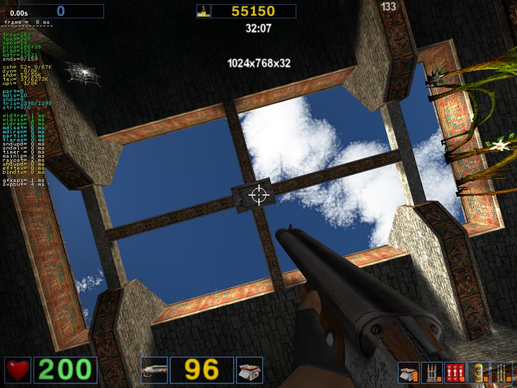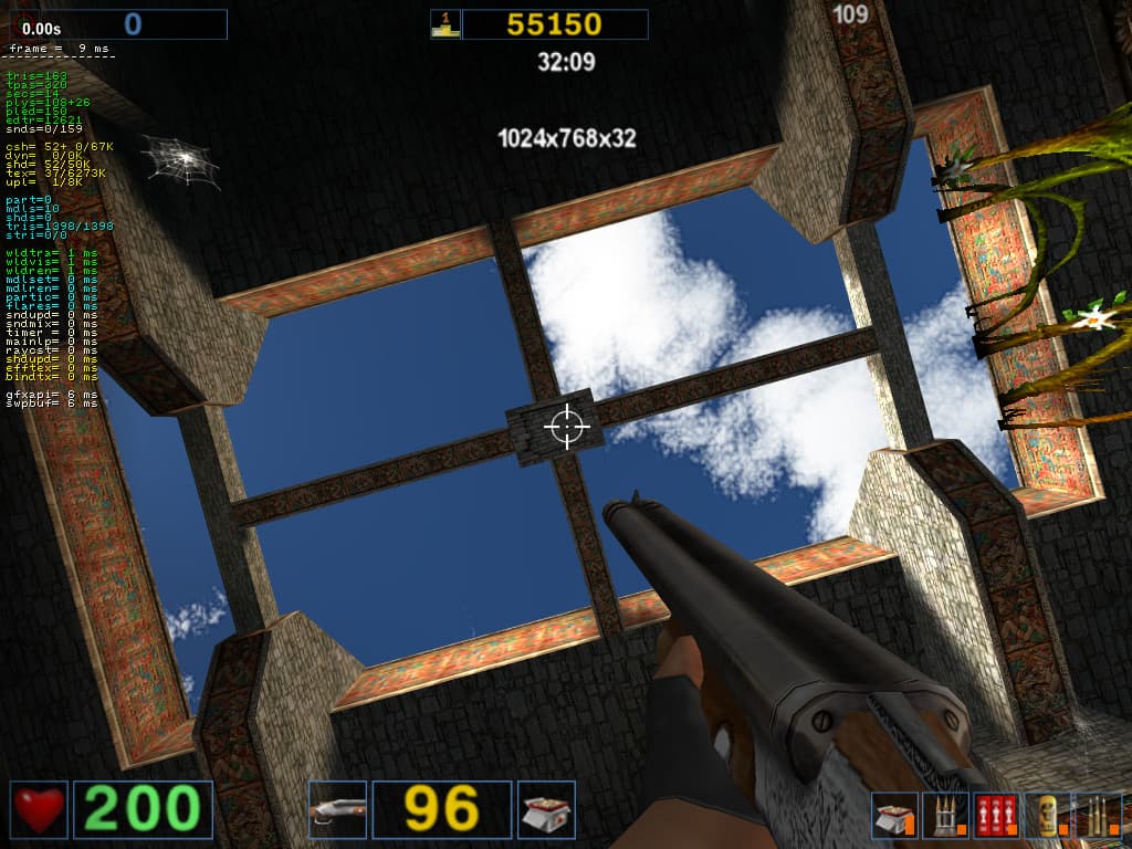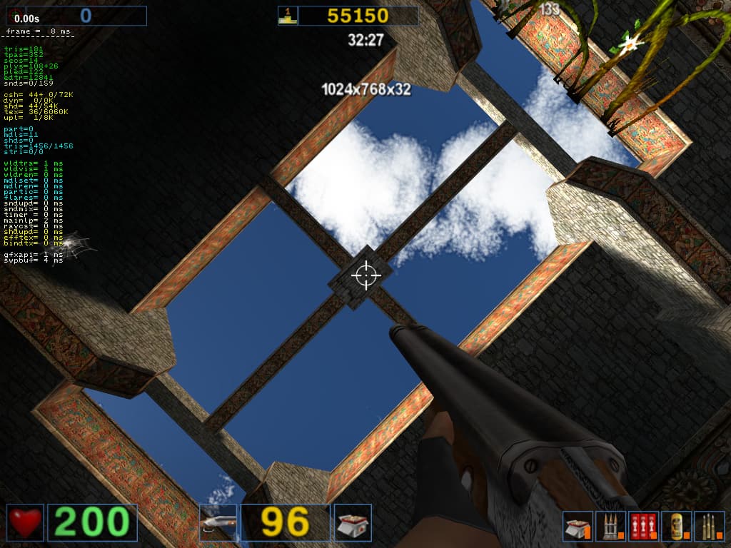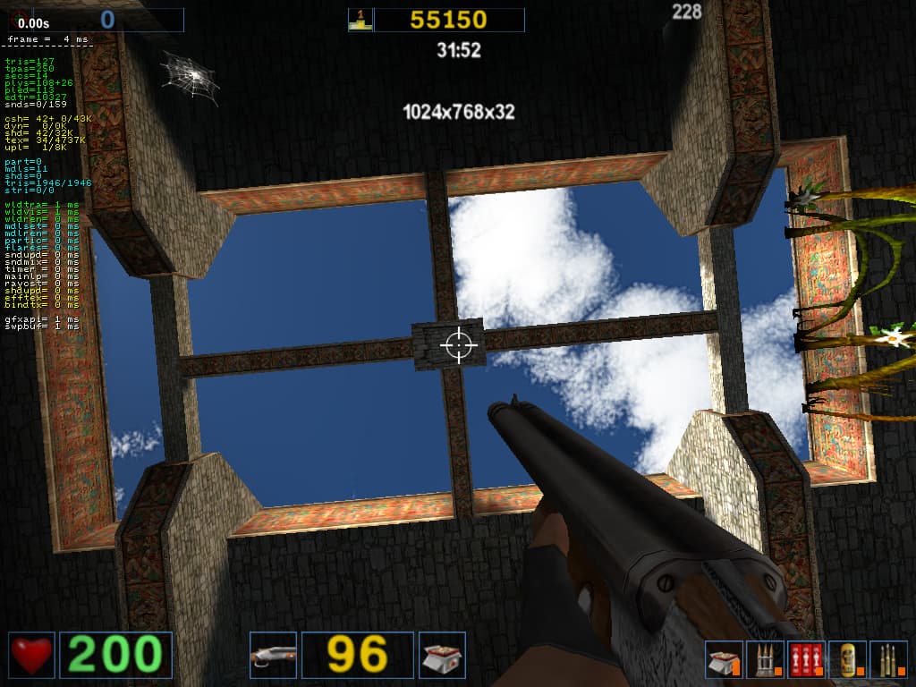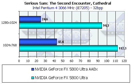 - Serious Sam: The Second Encounter v.1.05 (Croteam/GodGames) OpenGL, мультитекстурирование, Grand Cathedral demo, настройки тестирования: quality, S3TC OFF