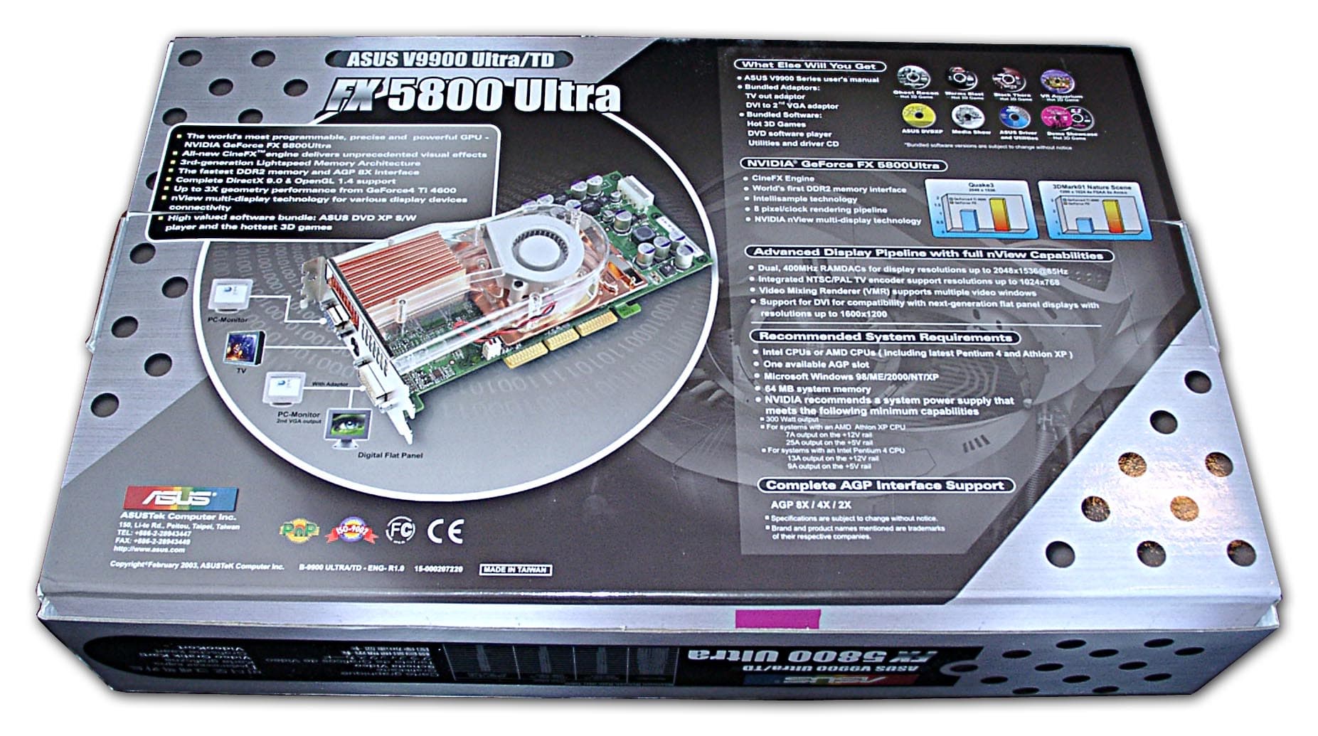 - GeForce FX 5800 Ultra очень греется, в закрытом корпусе такой нагреватель значительно поднимет температуру воздуха внутри, что не способствует стабильности работы системного блока в целом;