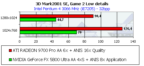 - Тестирование на базе Pentium 4 3066 МГц, 1024x768, Game Test 2