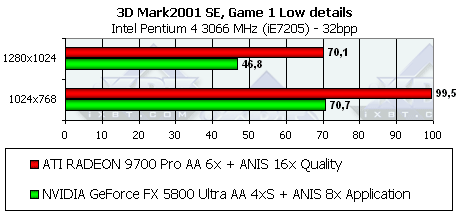 - Тестирование на базе Pentium 4 3066 МГц, 1600x1200, Game Test 1