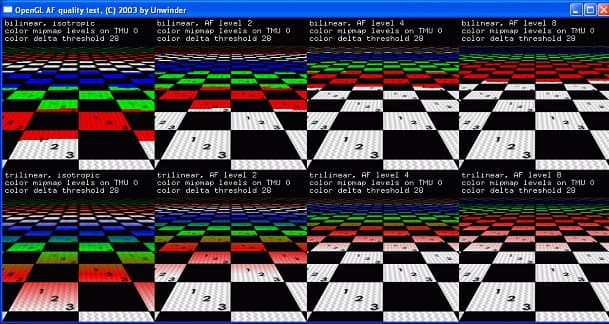 Для гарантированной активизации алгоритмов анализа чёткости текстур мы рекомендуем форсировать анизотропную фильтрацию в настройках драйвера даже в том случае, если анизотропной фильтрацией управляет само OpenGL приложение.