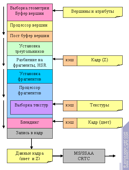 Cперва, чтобы понять, КАК все работает, обратимся к более удобной для восприятия логической структуре ускорителя (графический конвейер):